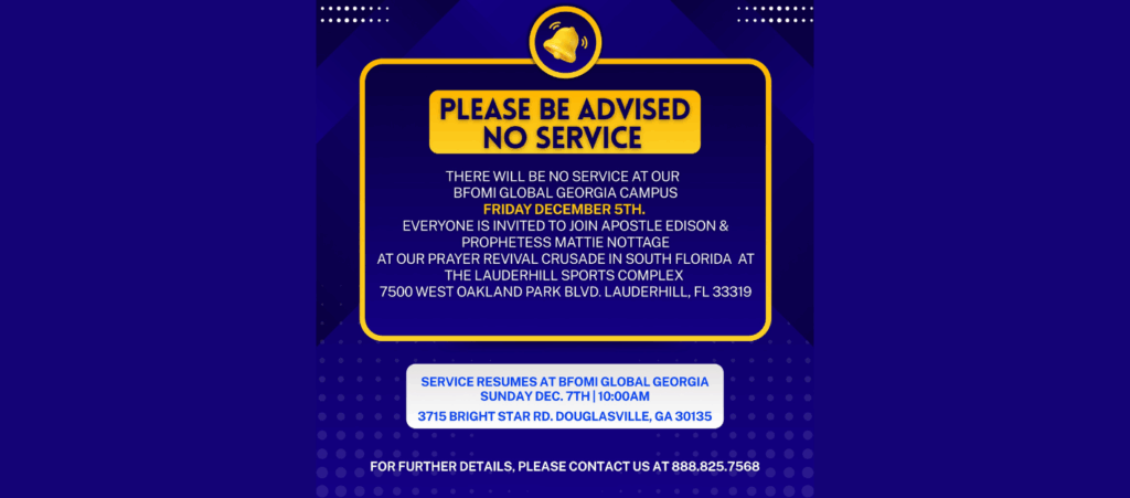 Join the Family of BFOMI GLOBAL GEORGIA with Apostle Edison & Prophetess Dr. Matte Nottage